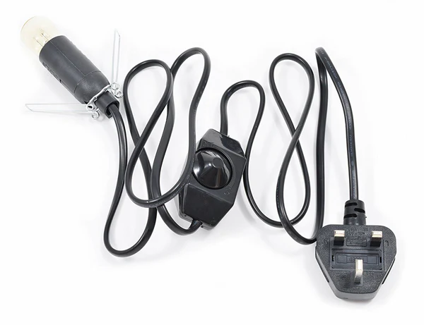 Salt Lamps UK Fittings Cable UK Plug Spare Lead Cord Set-Fittings with 2 Metal Clips. 3Pin Plug, Black Electric Cord Set, Cable, Rocker Switch on/off (PYGMY15Watt E14).